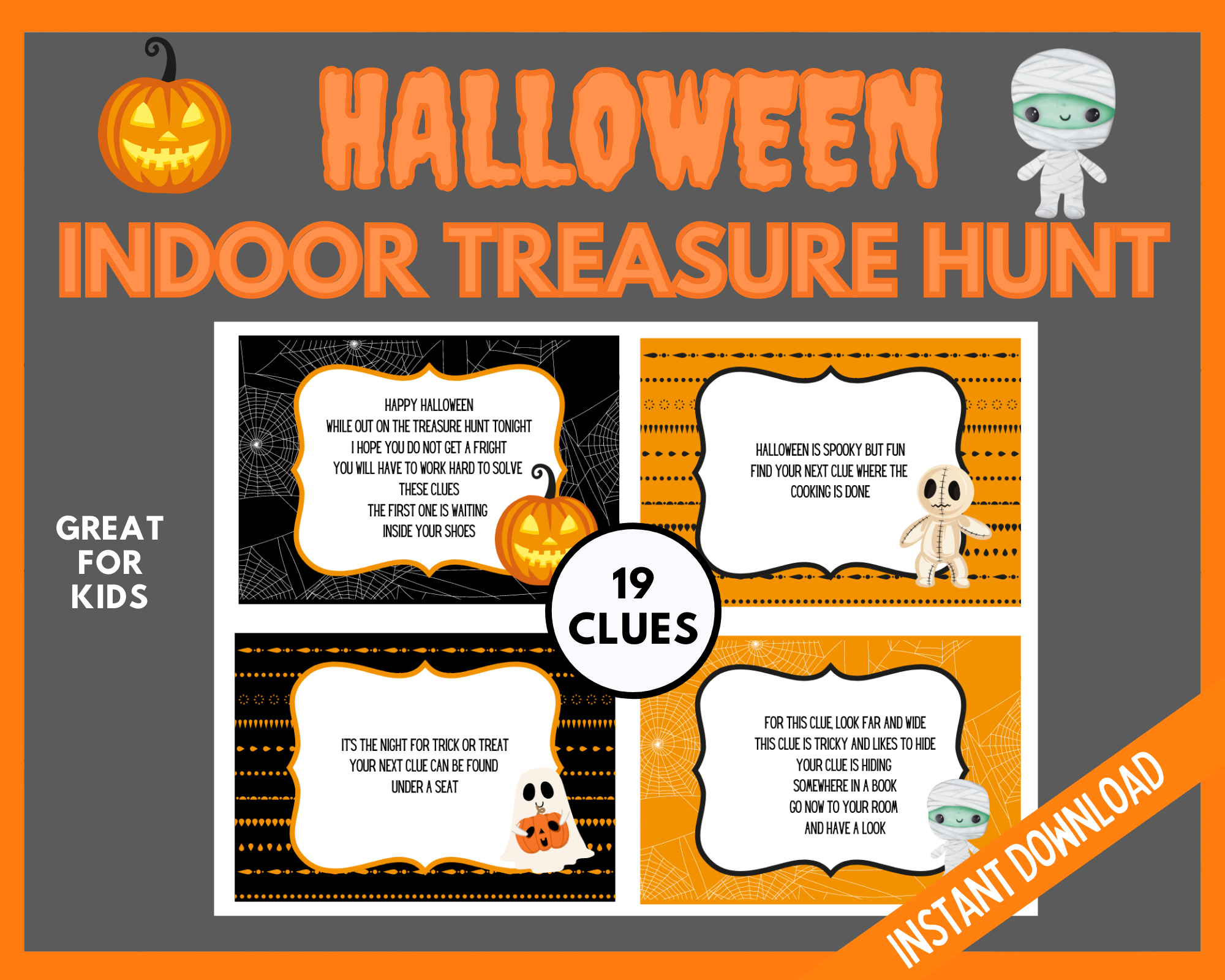 You can up the ante by doing it at dusk or using flashlights for a little extra spook factor. And don’t forget a small prize for whoever finds the most items, it could be as simple as first dibs on the candy stash or a special Halloween-themed treat.